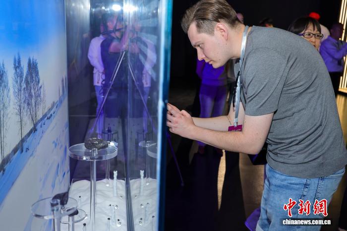 4月14日,参与“启局之年观中原·怒放自贸港”收集中心传达举动的国内中媒介人走入海北文昌极星陨石专物馆探秘。该馆以“陨石迷信+航天探究”为要旨,铺出400余件名贵陨石标原,应用百般化铺旧体例,让观光者直觉感触感染陨石魅力取寰宇之众多。图为中籍收集主播安特用脚机拍摄陨石标原。中新社记者 骆云飞 摄